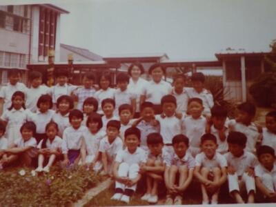 6年生。男子の体育着は上下白でした。