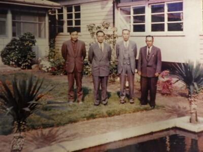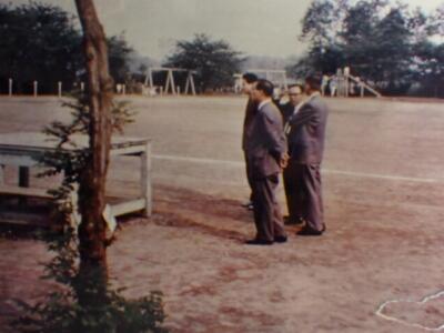 当時の校長先生が来賓の方をご案内しているところでしょうか。