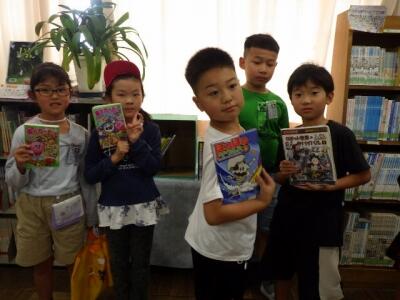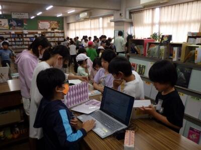 今日は校庭で遊べなかったこともあり、たくさんの児童が図書室にやってきました。