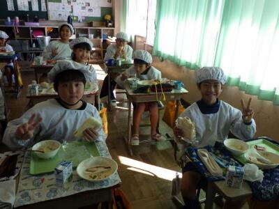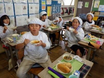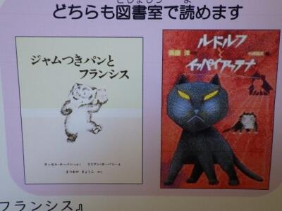 今日の給食は、ラッセル・ホーバンさんがかいた「ジャムつきパンとフランシス」と斉藤洋さんがかいた「ルドルフとイッパイアッテナ」に出てくる料理をイメージしたものです。