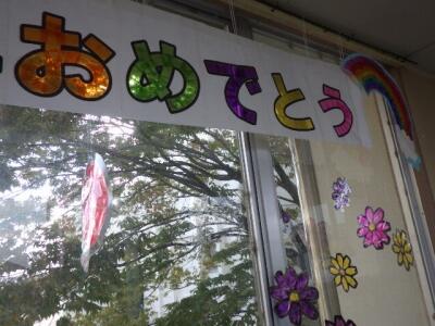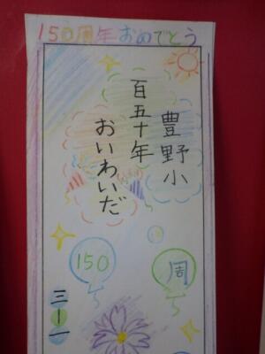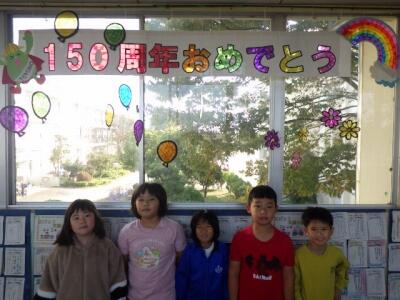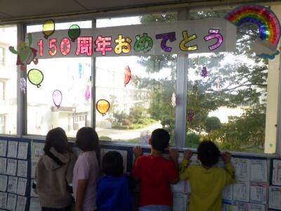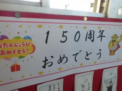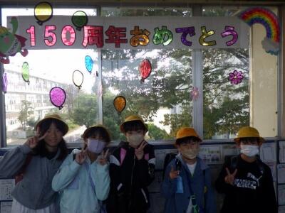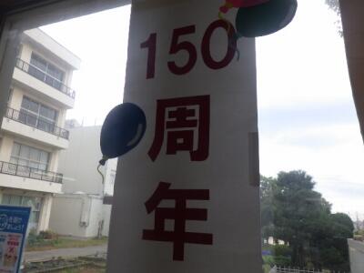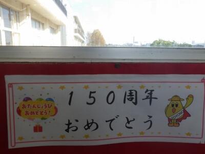 150周年記念ボランティアの皆さんが、2階渡り廊下にお祝いの掲示物を作ってくださいました。昨日の夕方完成しました。