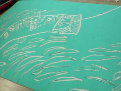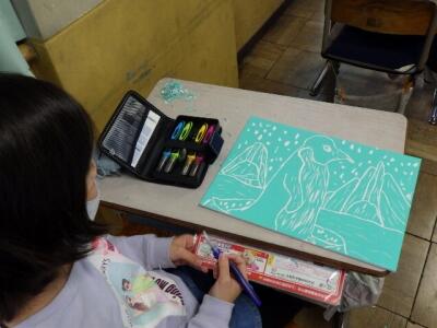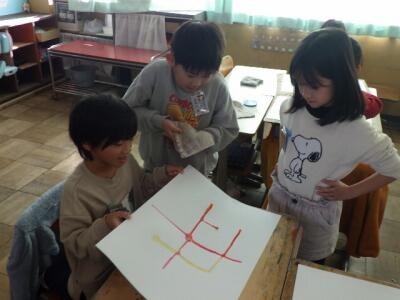 セロファンを貼り合わせることにより、光の強さや角度によって見え方が違ってきます。