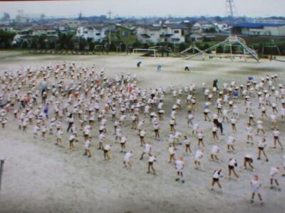 全校ダンス。記録によれば、この年の児童数は986名でした。