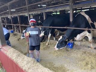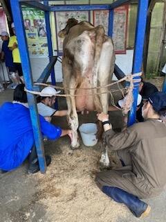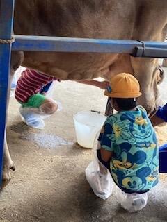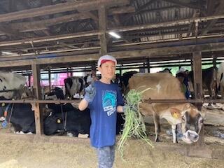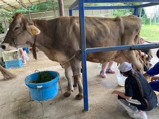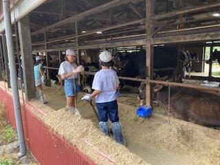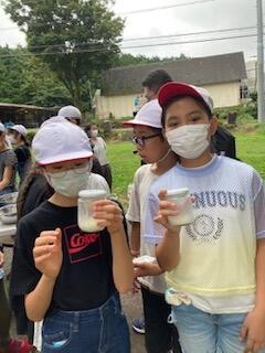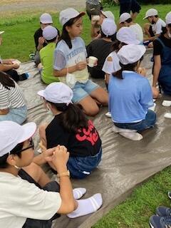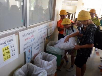 6年生たちが、草の入ったビニル袋を運んでくれました。