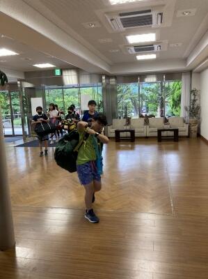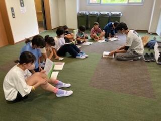 教室の中では、しおりを見ながら林間学校の日程確認をしていました。