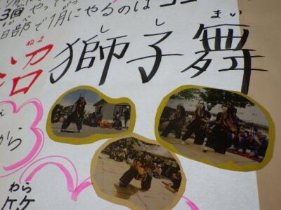 11月11日(土)の開校150周年記念式典の後に、豊野小の体育館で赤沼と銚子口の獅子舞を披露していただく予定です。