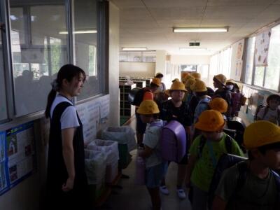 1年生の教室から、元気なあいさつが聞こえてきました。