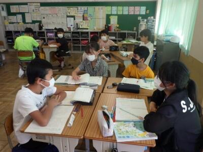 木曜日の昼休みに、1年生から6年生までの縦割りグループで集まります。