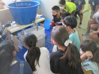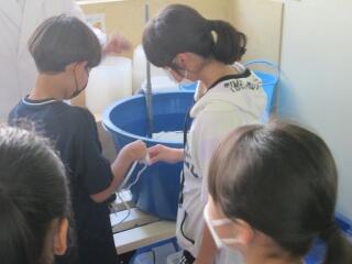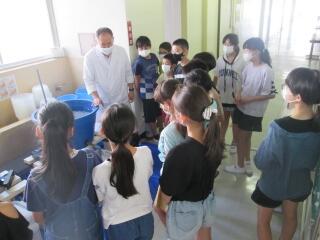 水槽の仕組みを学び、ヒラメ受け入れの準備をしました。