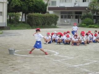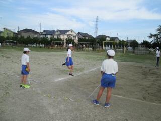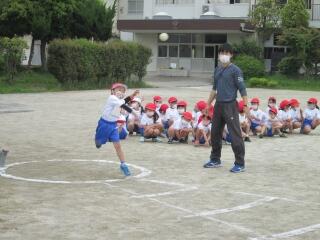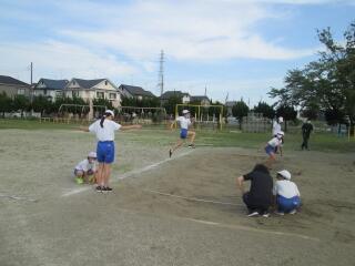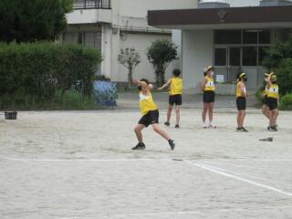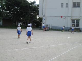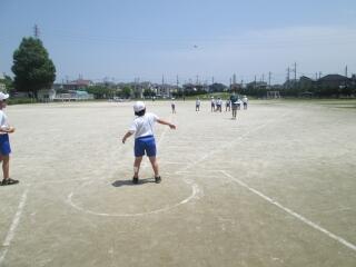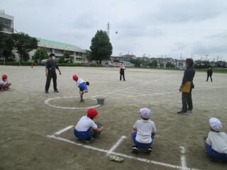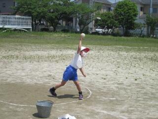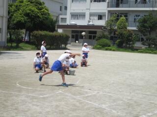 久しぶりに気持ちよく晴れた校庭で、青空に向けてボール投げをしました。