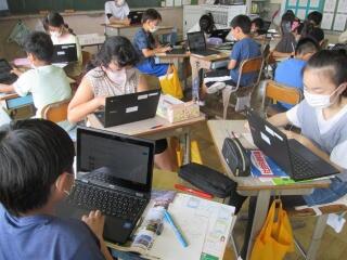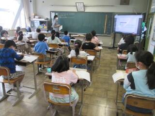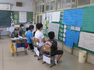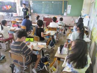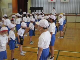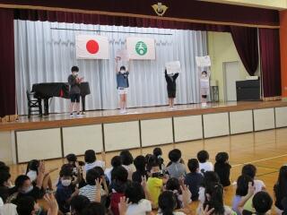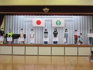 終業式では、校長先生の話と5年生代表児童の振り返り、