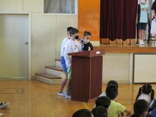 始業式では、4年生代表児童から2学期の抱負の発表がありました。