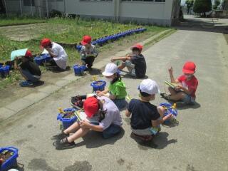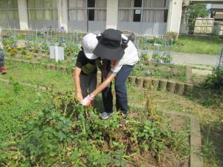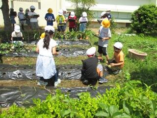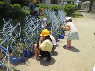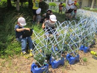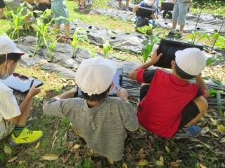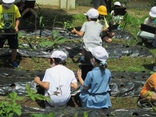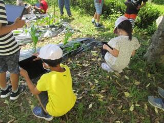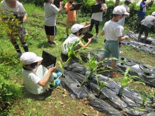 2年生が植えたトウモロコシや枝豆、ミニトマトなどが大きく育ってきました。