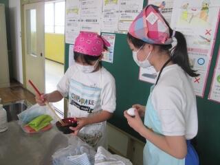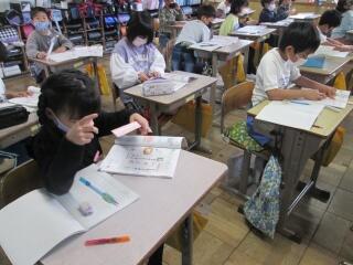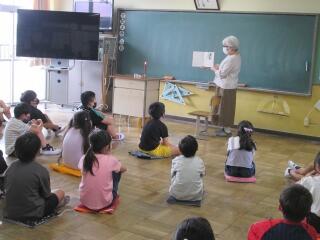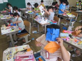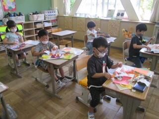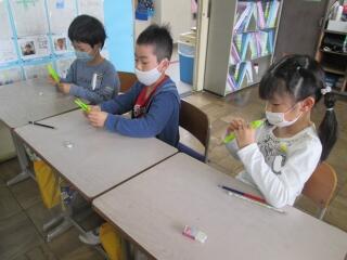 1年生はハサミを使って、チョッキンパッの飾りづくりをしていました。