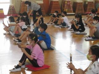 大小のリコーダーを見せてもらったり、持ち方やタンギングを教わったりしました。