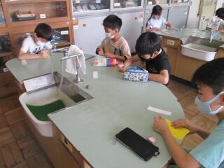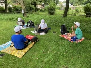 行き先について調べたり、キャンプファイヤーの練習をしたりしています。