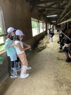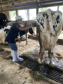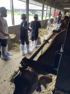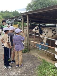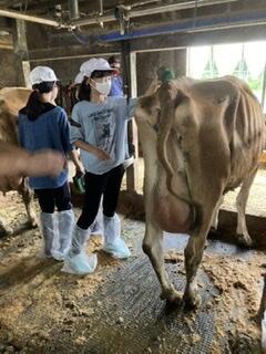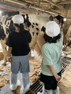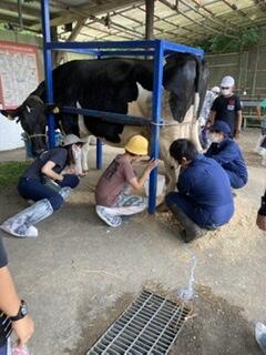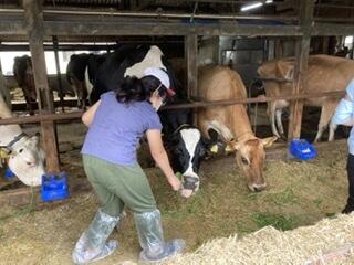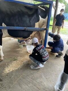 牧場で酪農家の方の話を聞いたり、牛の乳しぼり体験をしたりしました。