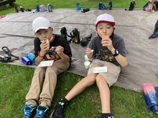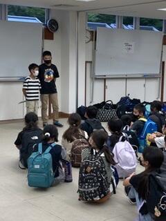 「ただいま~!」林間学校から無事に学校に戻りました。
