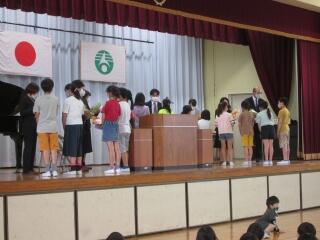 2年生からあさがおのたね、3年生から校歌の歌詞カードが