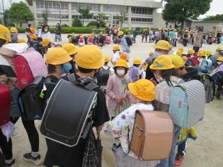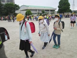 毎朝、様子を見ながら昇降口に向かっている1年生。