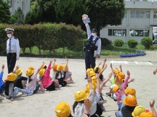 埼玉県警のあおぞらチームが来校し、防犯教室を行いました。