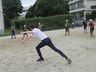 昼休みは豊野っ子とドッジボールを楽しんでいます。