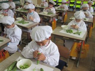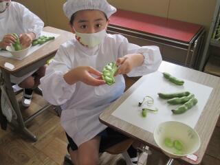 1年生 そら豆のさやむき