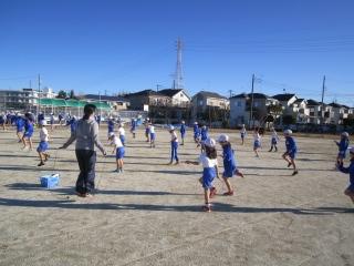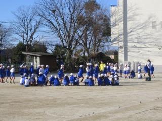 風が強い中でも、元気に体育。