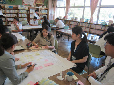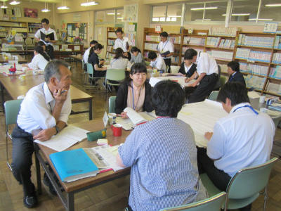 放課後に、研究協議会で授業について活発な議論を行いました。