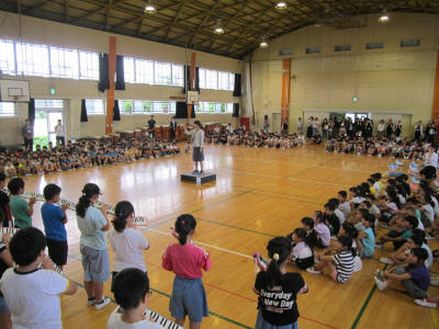 誰も一人一人が、世界に一人だけのかけがえのない子だから、自信を持つこと。そして、何事にも「♪一生懸命にになればいい♫」の歌の歌詞から、全校で歌いました。