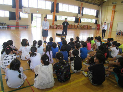 日頃子供たちの安全を守っていただいている富田警部補様から、「安全」についての講話をいただきました。