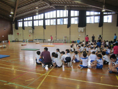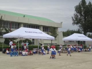 涼しい風の中、子供たちは、運動会練習のため校庭に集まってきました。