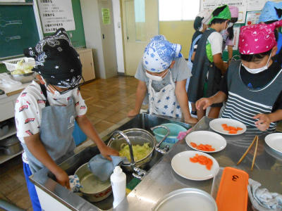 1年生の初めての給食です。当番もやる気いっぱい。決まっています。
