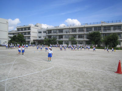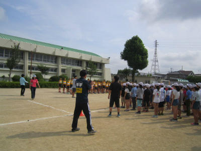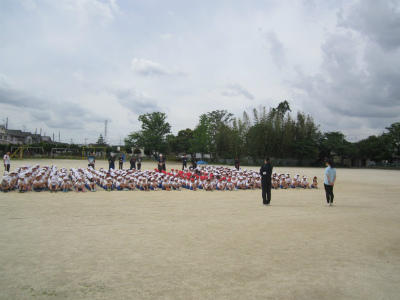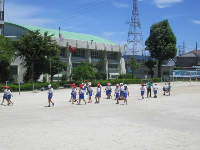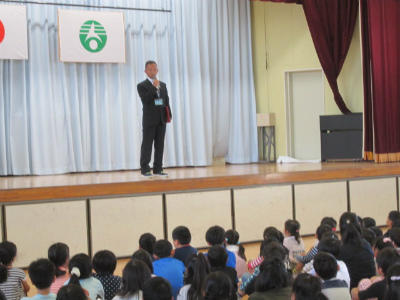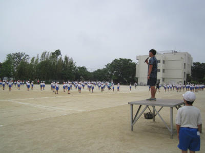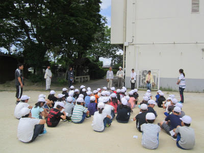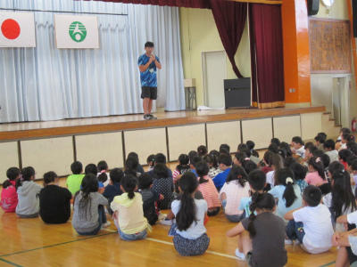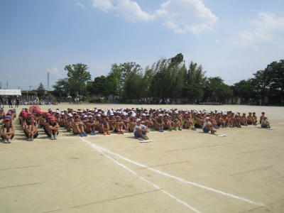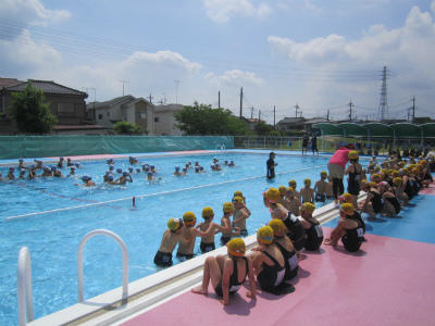 校長から安全のため、約束をしっかり守って、水に慣れたり、長く早く泳いだりすること。プールをきれいに掃除をしてくれた5,6年生に全員でお礼を言いました。
