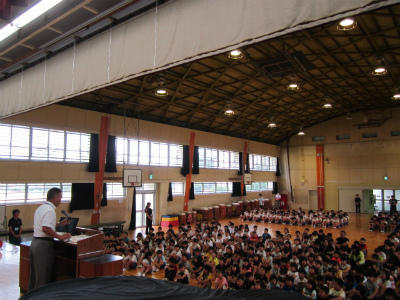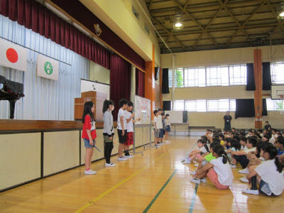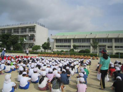 今年の水泳学習の安全と約束やめあてについて、全校で確認しました。