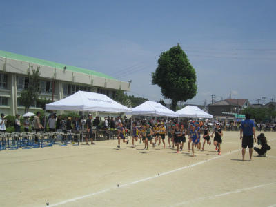 昨日の陸上大会の選手・補欠メンバーに全校から拍手