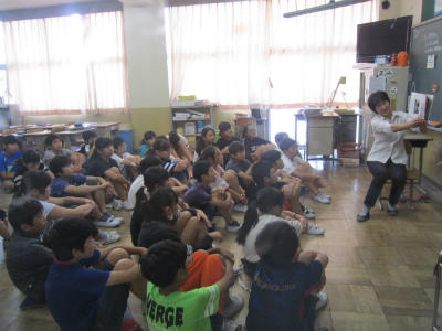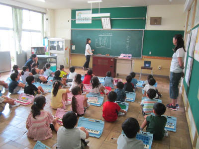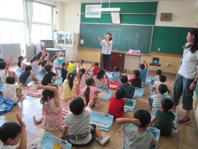 1年生が、鍵盤ハーモニカの講師を招いて、講習を受けました。