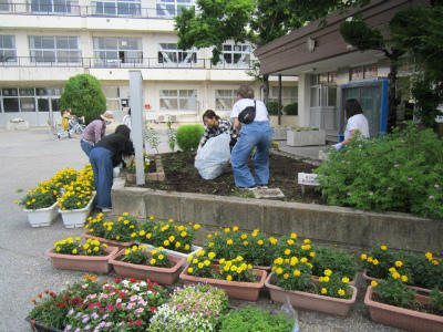 花壇ボランティアのみなさんのご協力で花壇に花を植えます。