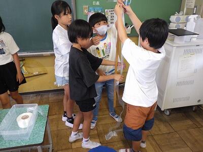 暑さのため、校庭で行う予定だったなかよし集会は教室内で行いました。