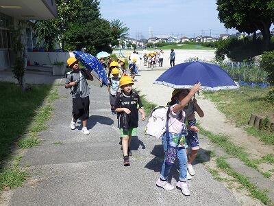 出発した3年生の後を追うと、豊野町第一公園(通称ふね公園)で休憩中でした。