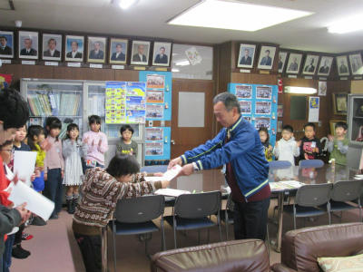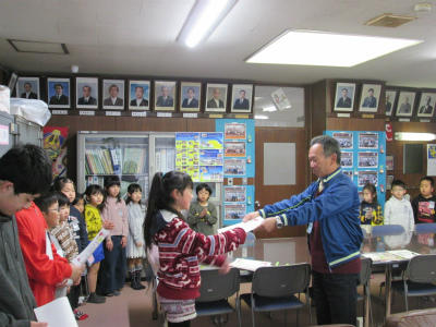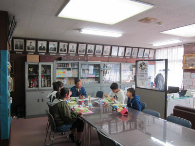 全校児童からの拍手はありませんが、少ない人数ながら温かい拍手に包まれた校長室でのコスモス賞の表彰でした。