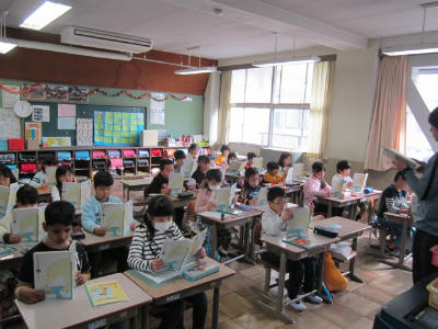 6年生のかけ算九九ボランティアも、今日が最終日。6年生が来てくれるのをうれしそうに待っている2年生。かけ算九九を唱えている教室は、とても和やかです。