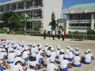 今年の水泳学習の安全のために、全校児童でプール開きを行いました。