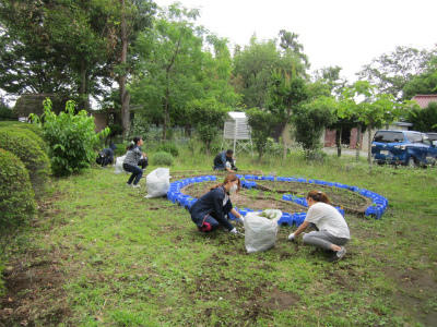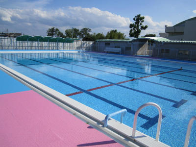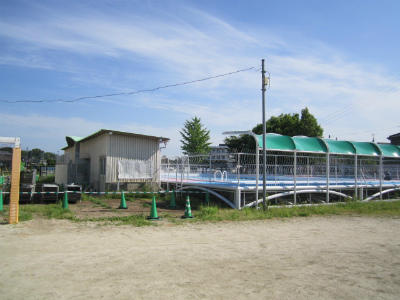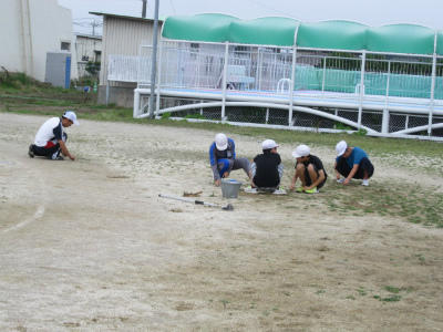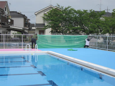 今日は、あいにくの天気ですが、水泳学習の準備は進んでいます。