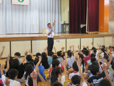 明日の業前の安全朝会では、富田警部補から安全についてのお話をいただきます。保護者のみなさんもぜひ一緒に聞いていただければ、同じ指導が家庭でもできて、子供たちの事故防止に、より有効です。