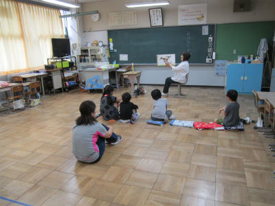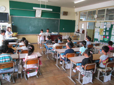 養護実習生の研究授業です。6月4日の「むし歯」予防にちなんで、