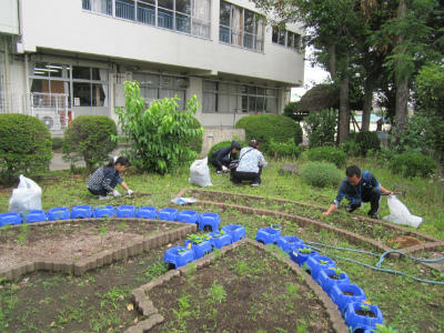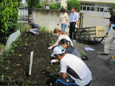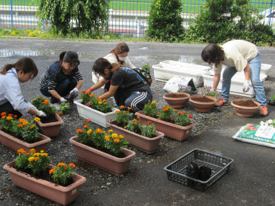 花壇づくりボランティアのみなさんが、豊野小学校の花壇に花を植えてくださいました。