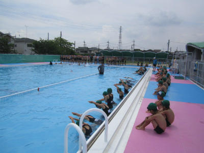「みんなのために工事をしてきれいになったプールだから、安全に気持ちよく泳ぎましょう。」と、校長からお話を聴きました。