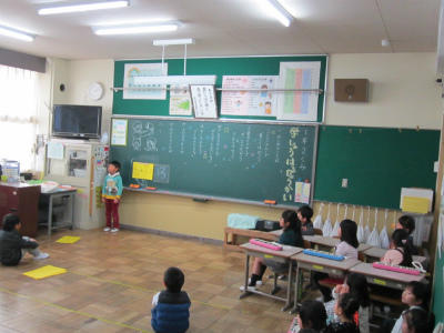 新1年生のお手本になろうと、一生懸命発表しています。