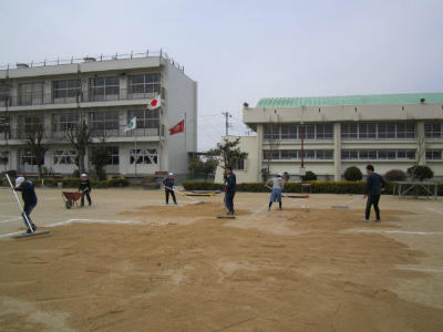 校庭の土入れ